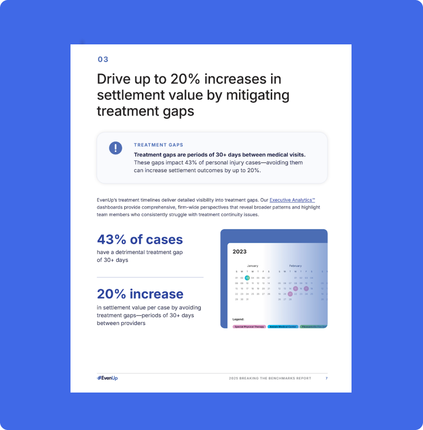 EvenUp’s 2025 Breaking the Benchmarks report highlights where the industry stands on modern, actionable metrics. The report shows how leading EvenUp firms exceed these measures.