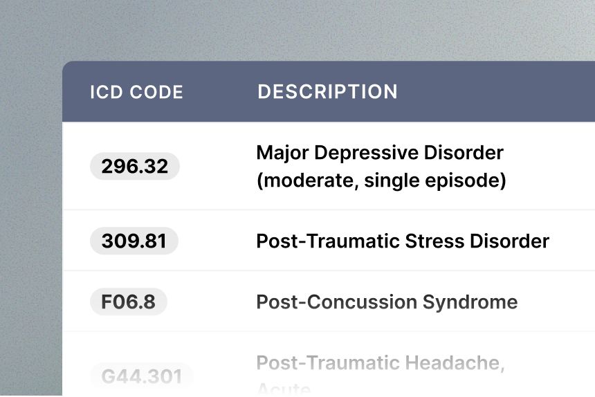 Show the toll of your clients’ injuries with medical summaries that include ICD codes, treatment details, medical projections, and more.