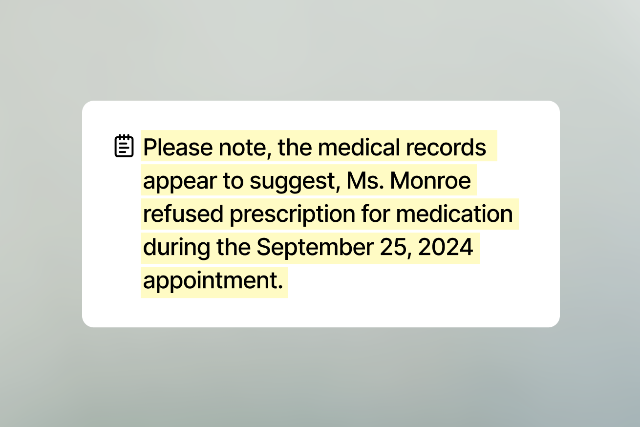Catch missing documents, gaps in treatment, and other inconsistencies with notes from our team of former paralegals, lawyers, and adjusters.