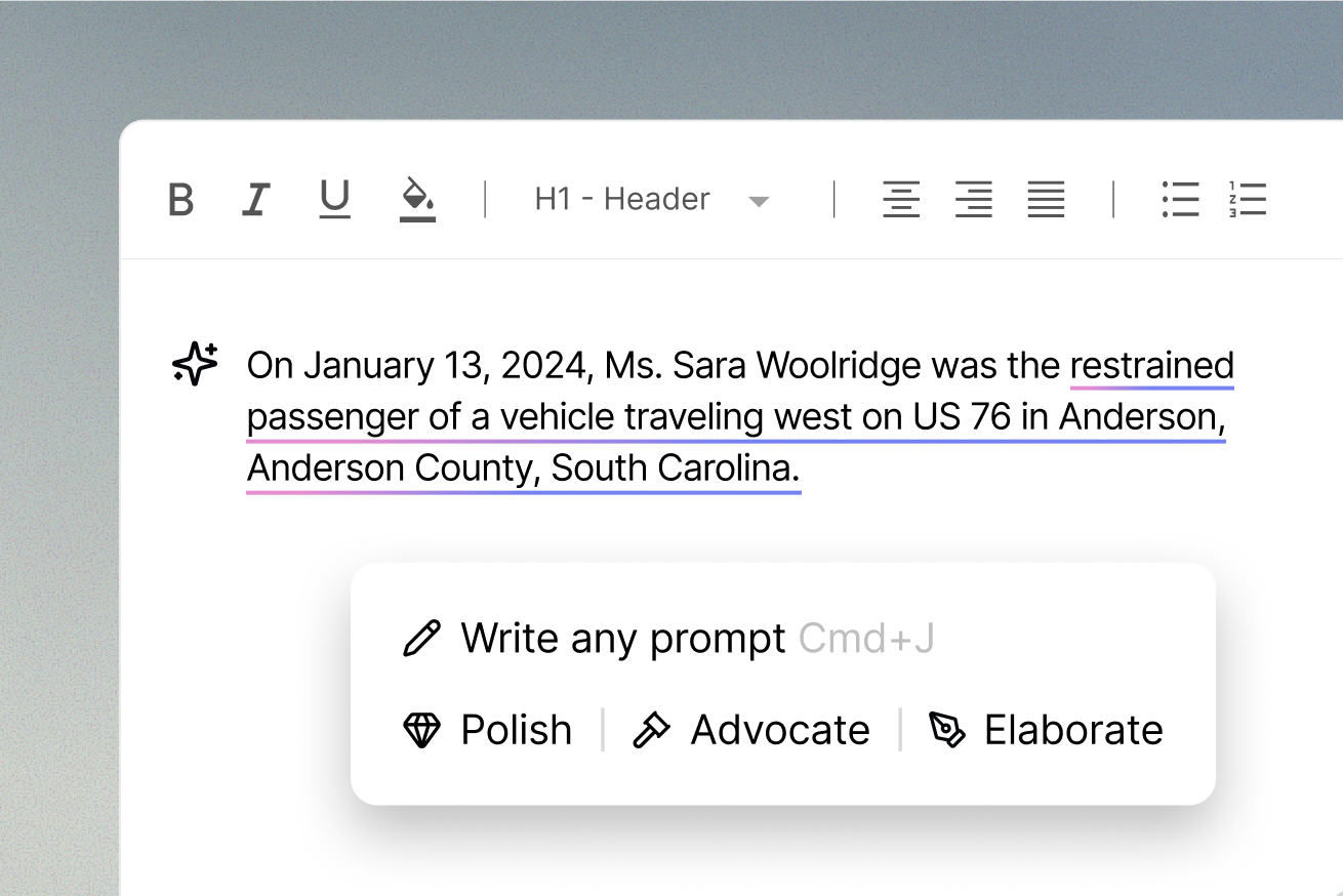 Receive accurate, comprehensive demands from Piai™, our proprietary AI, trained on the largest personal injury data set.