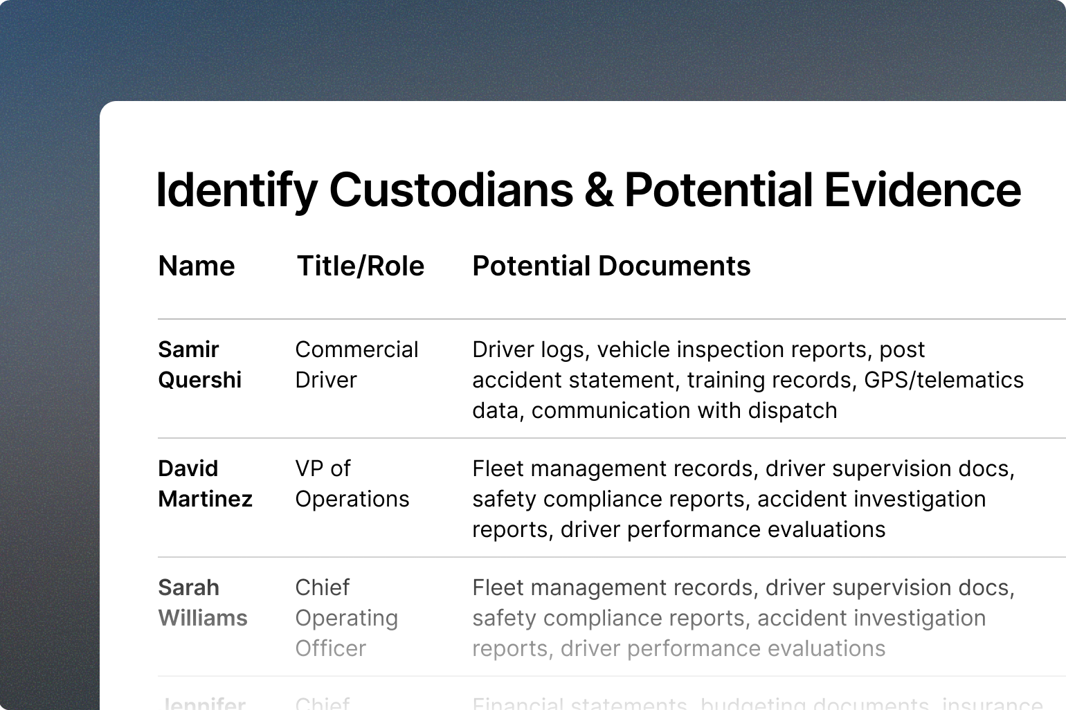 Break down depositions into structured summaries with key admissions, timelines, and inconsistencies so teams can identify priority witnesses, refine questioning, and decide where to push next.