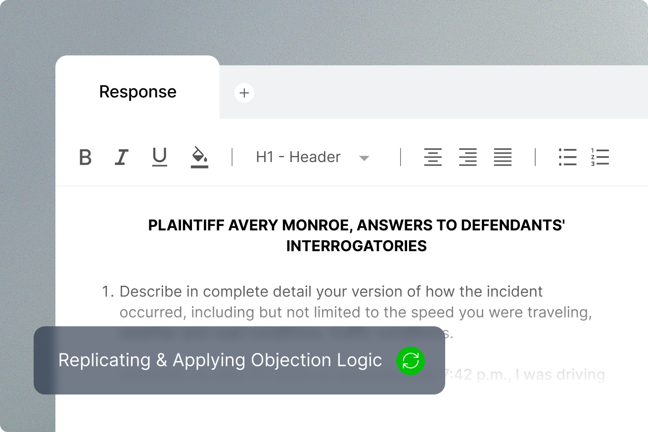 Generate interrogatories, RFAs, and requests for production aligned to case facts so you can move discovery forward without starting from scratch.