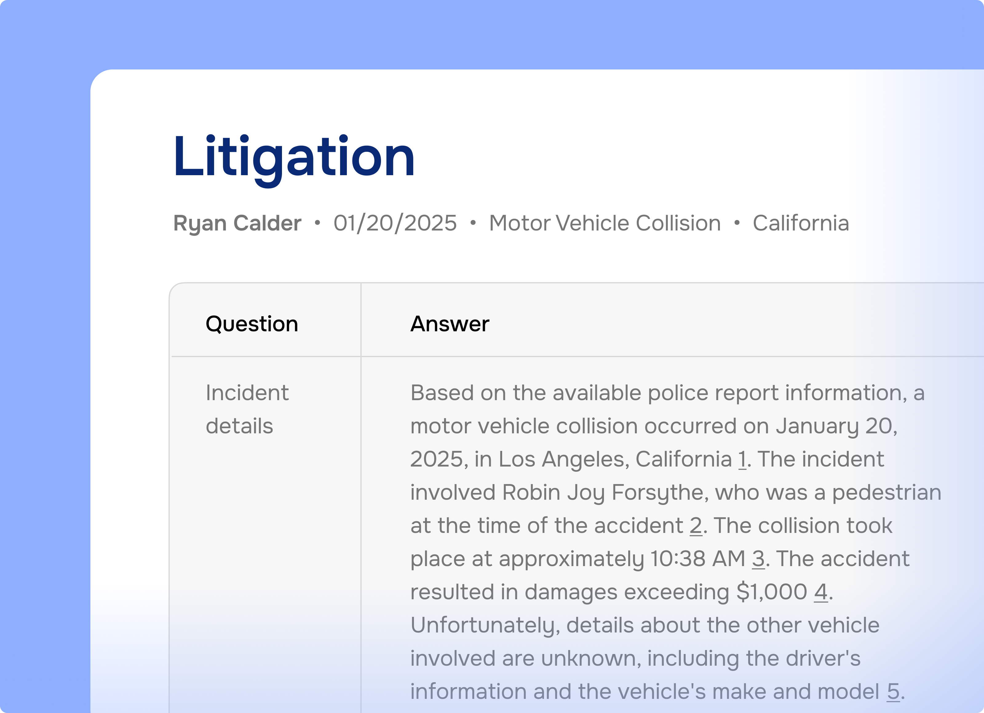 Create mediation briefs and motions to discovery responses and bills of particulars—all in your firm’s exact tone and format in minutes. Auto-generate visualized chronologies that bring your client’s story to life, strengthening your position before mediators, judges, or juries. Every fact, exhibit, and citation is accounted for—no manual cross-referencing required.