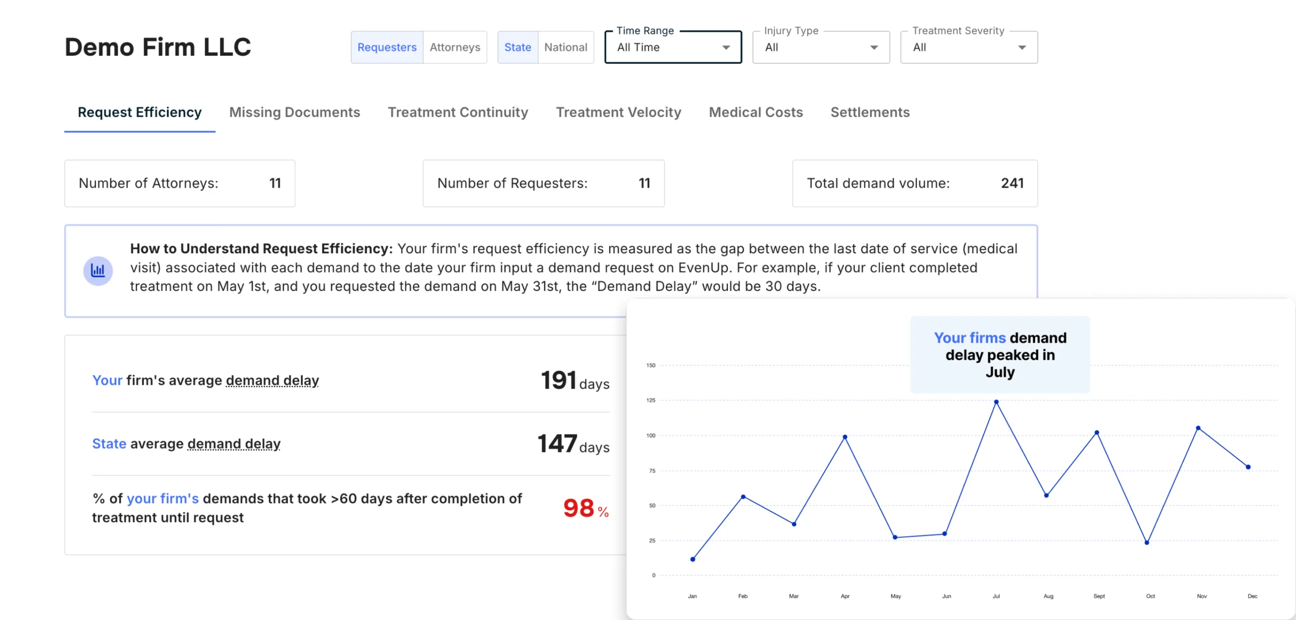 Increase settlement value by ensuring clients are receiving treatment from a provider regularly and without any gaps.