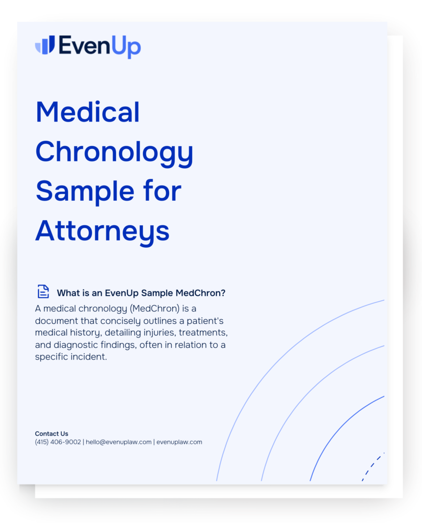 Stop spending hours on disorganized medical records.Download a real sample medical chronology built using EvenUp’s tools and see how a structured medical chronology template can power faster, stronger settlements.