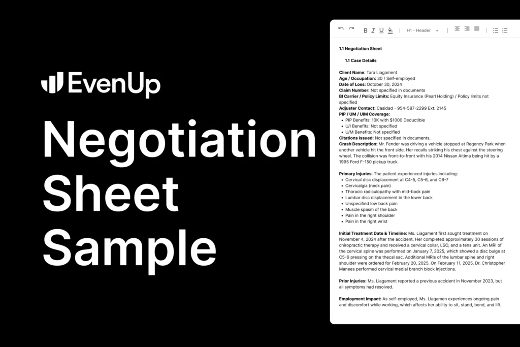 Failing to document the full case value is another costly error. Incomplete records mean incomplete compensation. EvenUp’s platform helps prevent this by ensuring nothing gets missed during case preparation.
